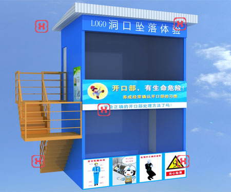 1、洞口墜落體驗由樓梯和房屋組成,配備遙控裝置。尺寸一般為5500*3000*6000,可根據(jù)現(xiàn)場實際尺寸調(diào)節(jié)。