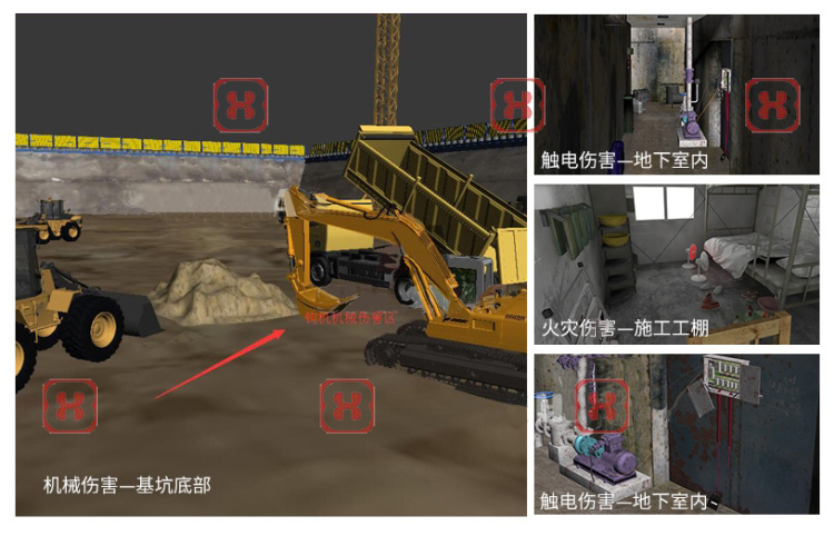 銳弦科技利用3Dmax建立了與實(shí)體體驗(yàn)館1:1的效果模型,通過(guò)軟件處理,結(jié)合VR眼鏡實(shí)現(xiàn)了動(dòng)態(tài)漫游,讓體驗(yàn)者有更加逼真的感受:可以直接感受體驗(yàn)電擊、高空墜落、洞口墜落、腳手架傾斜、墻體傾倒、隧道逃生、外架作業(yè)、支模系統(tǒng)作業(yè)、高空作業(yè)、塔吊吊裝等30多個(gè)項(xiàng)目虛擬效果;可以對(duì)各構(gòu)件定位、排版、做法、標(biāo)準(zhǔn)、屬性等信息進(jìn)行查看等。