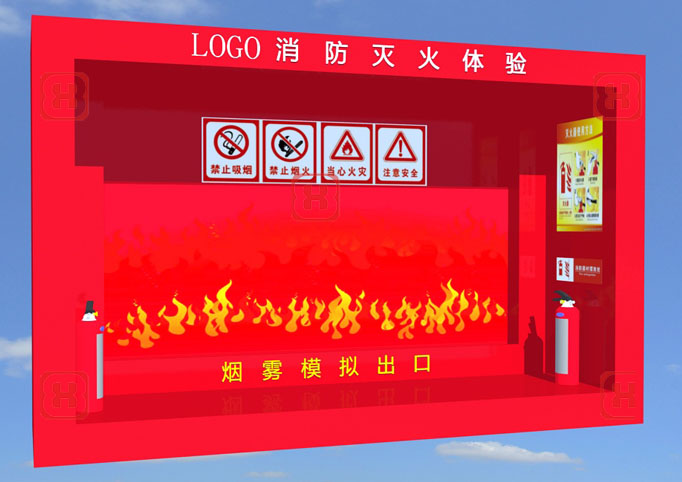 2、體驗時打開遙控開關,模擬火災現(xiàn)場濃煙效果。使體驗者能夠正確的使用各類滅火器。